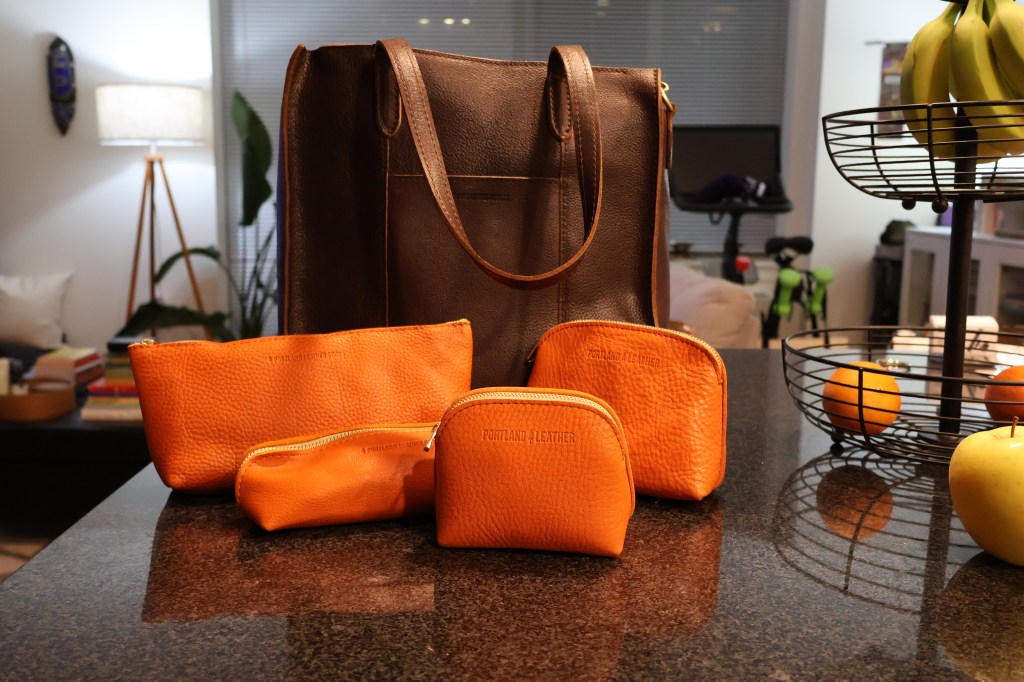 Some new items I ordered from Portland Leather Goods delivered last week and sparked joy. I’m a fan of the brand’s quality, craftsmanship, timeless styles, and functionality. This tote has the right amount of structure without being rigid and easily fits a 14 inch laptop. I ordered these pouches in orange to spice up life on the inside of my bags.